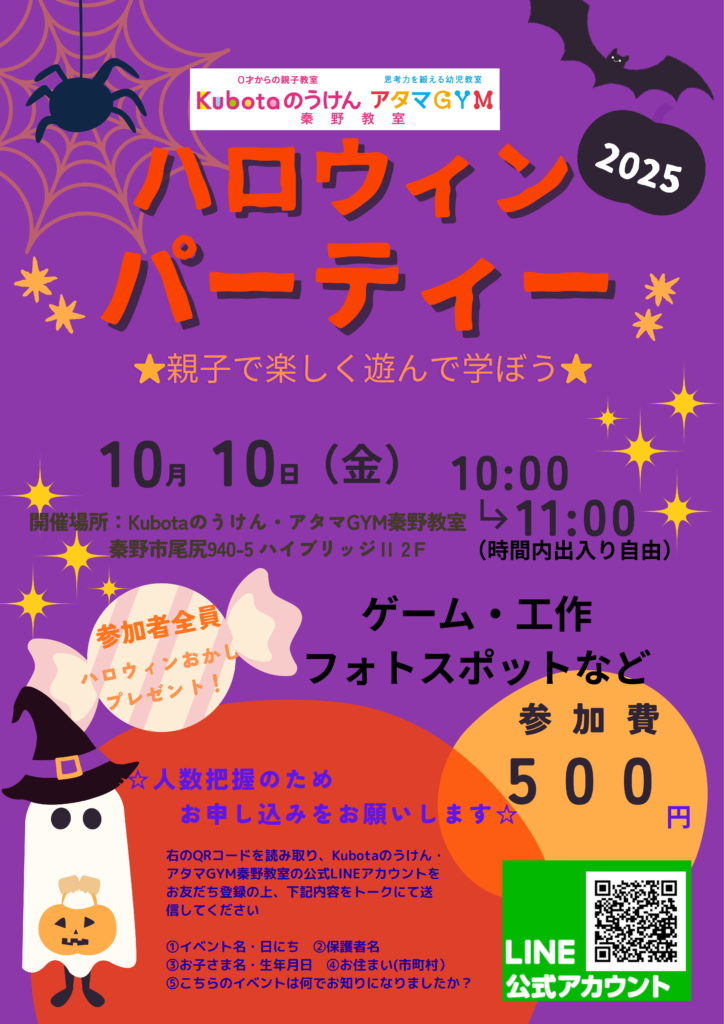 ご参加希望の方は、Kubotaのうけん・アタマGYM秦野教室のLINE公式アカウントに参加希望の旨お知らせください。