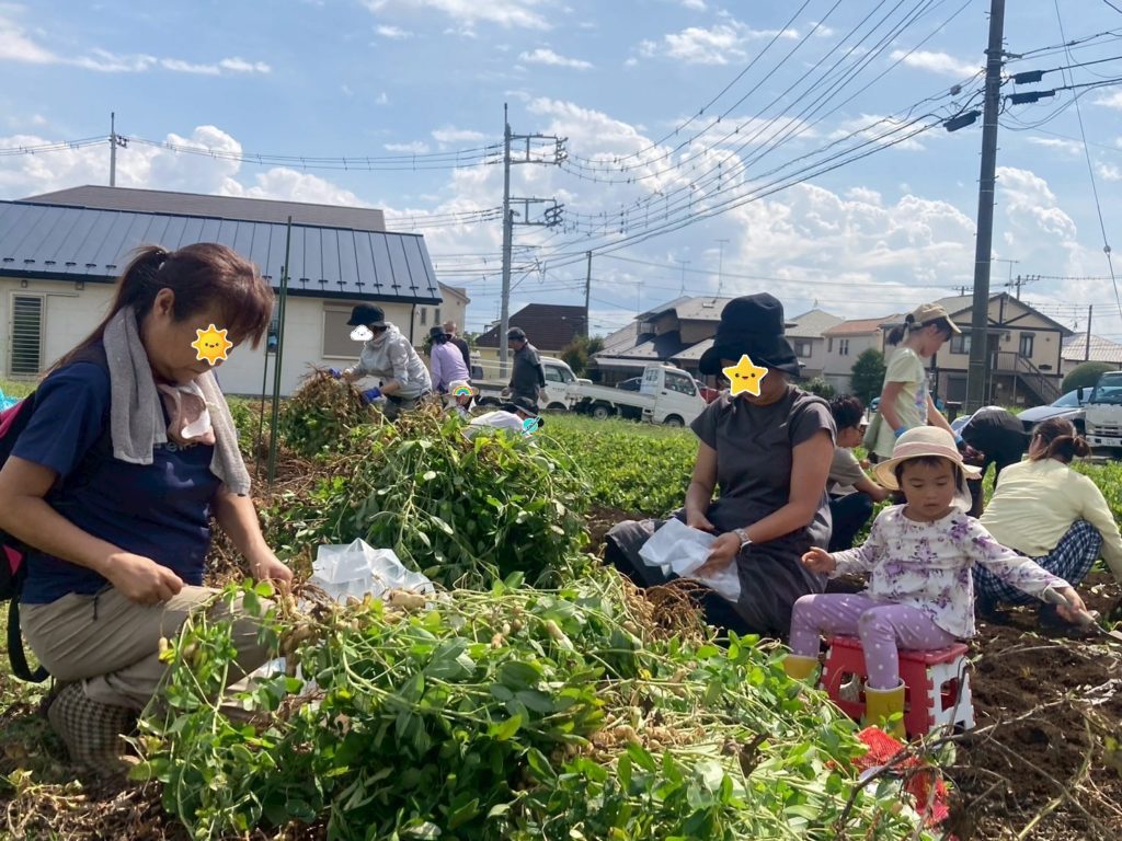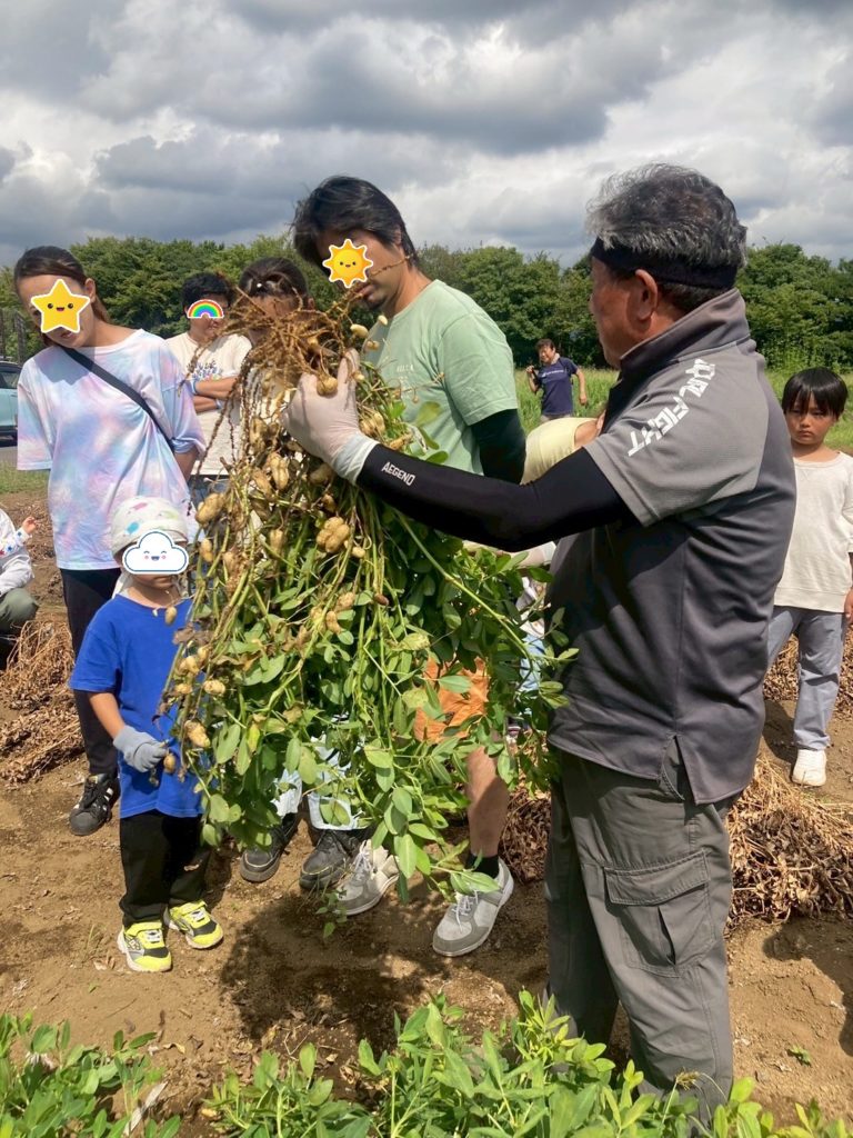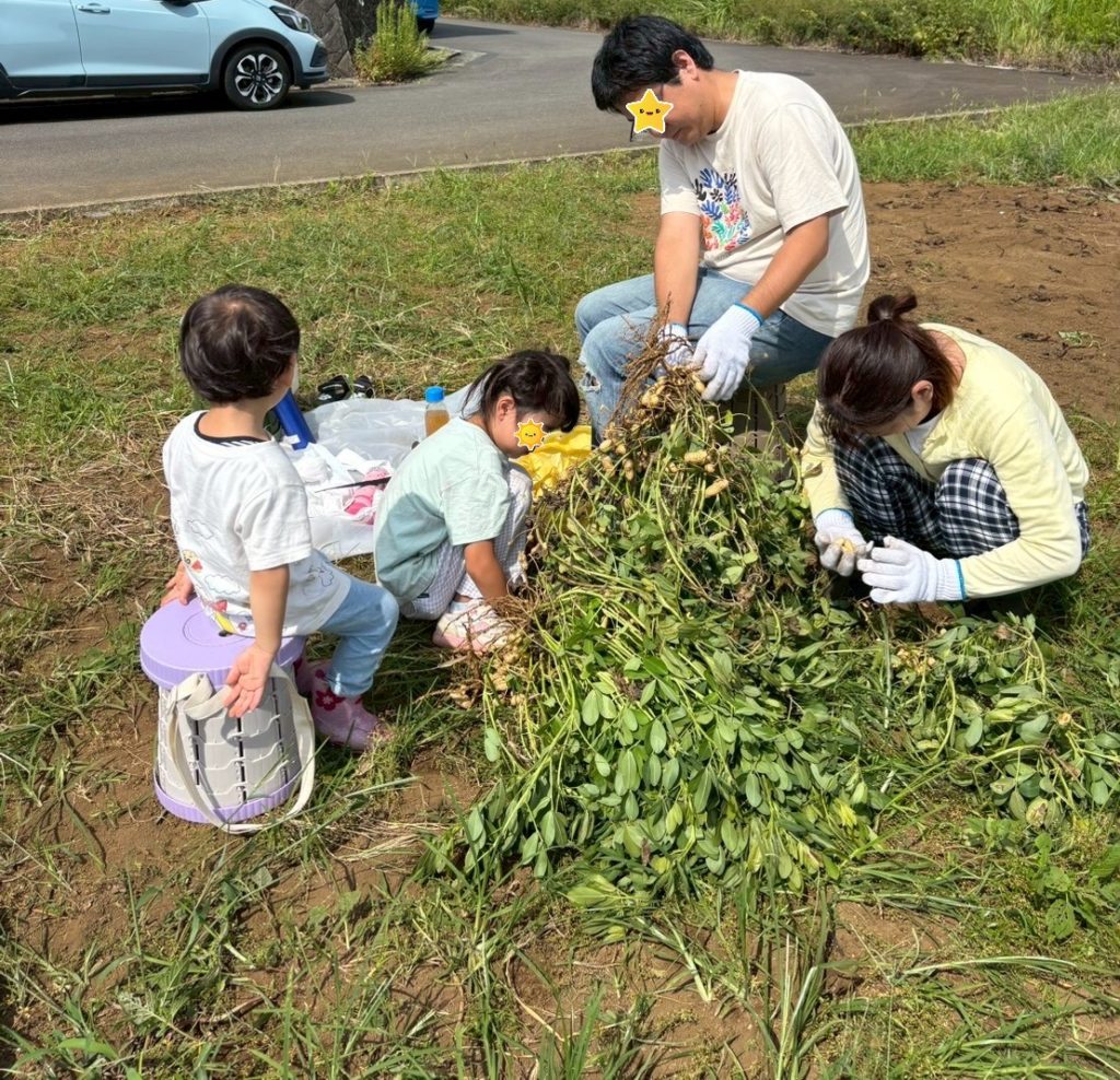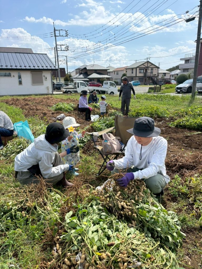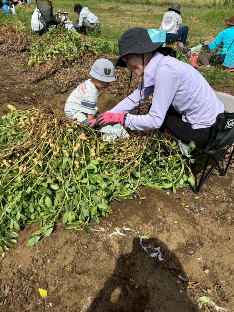 お子さんたちも落花生を引き抜いたり、実をとる作業を一生懸命取り組んでいました。飽きても畑の土で遊んだり、小さい落花生の殻をむいて遊んだり、それぞれでその場にあるもので楽しそうに遊ぶ姿がとてもよかったです。