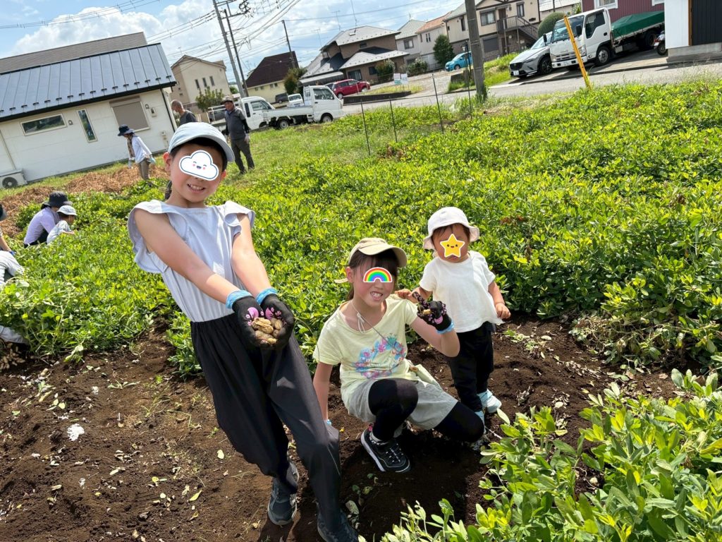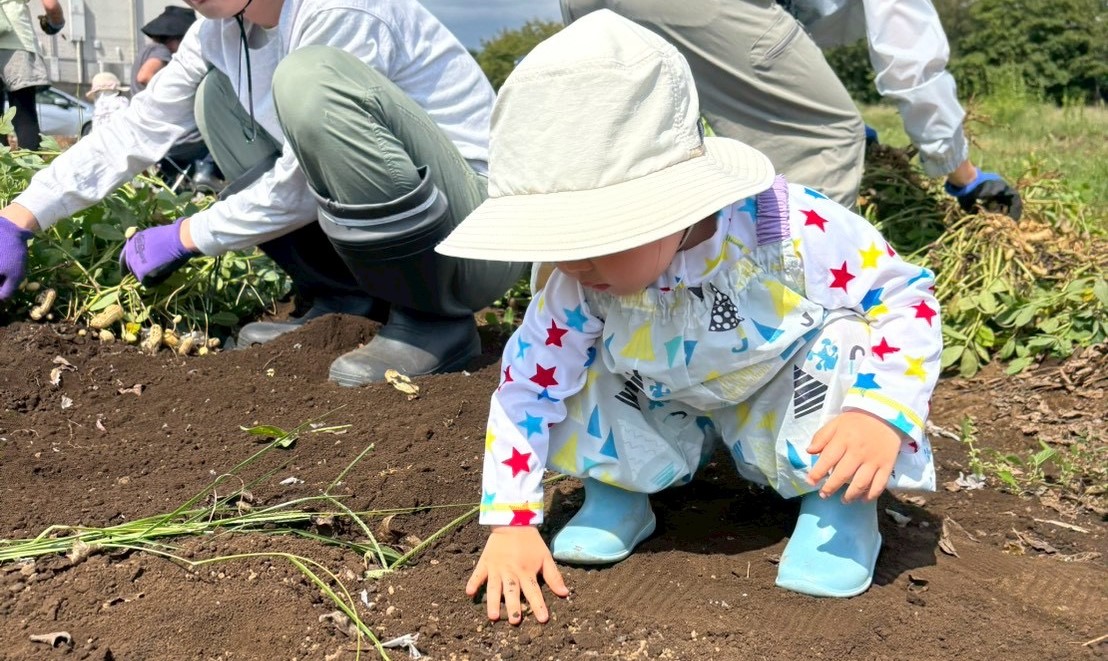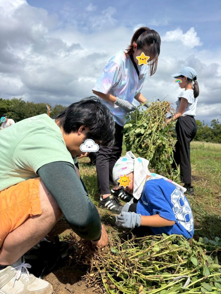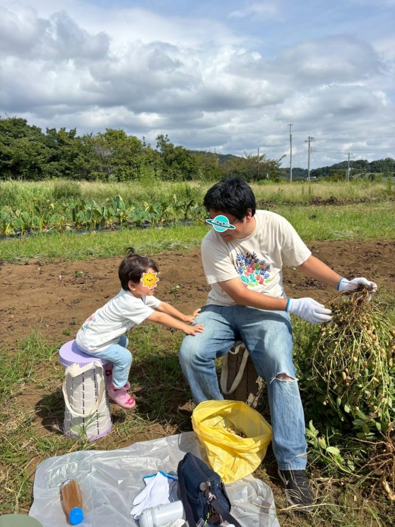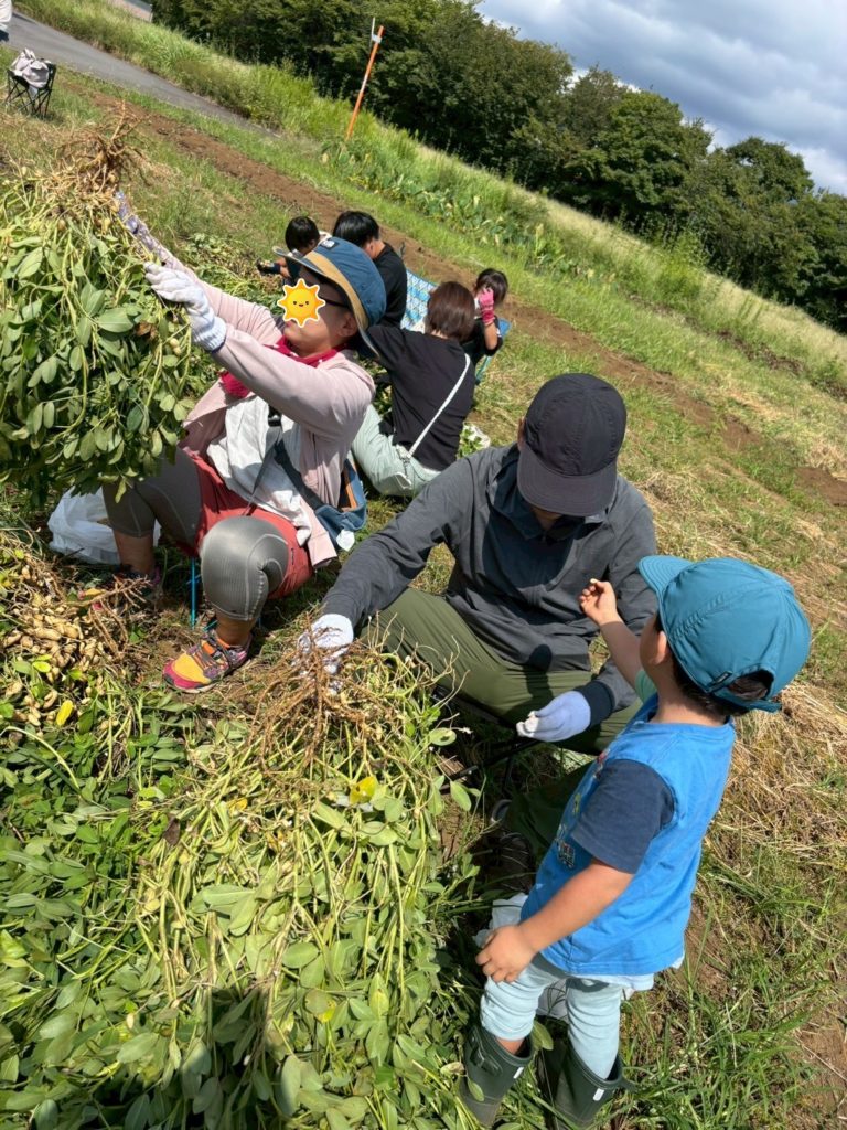 お子さんたちも落花生を引き抜いたり、実をとる作業を一生懸命取り組んでいました。飽きても畑の土で遊んだり、小さい落花生の殻をむいて遊んだり、それぞれでその場にあるもので楽しそうに遊ぶ姿がとてもよかったです。