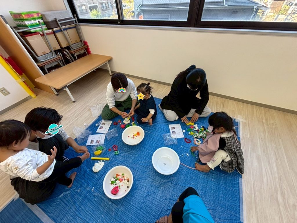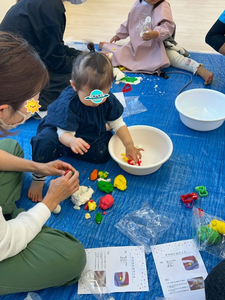 お子さんたちが自分で想像したものを作っている姿や、一生懸命に粘土の感触を楽しんでいる姿、そしてママたちの笑顔がとても印象的でした。