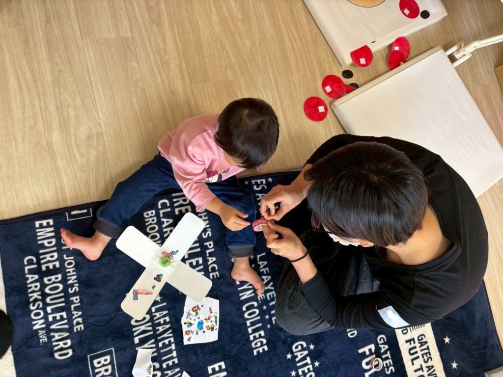 ママたちはお子さんに対して手を出しすぎることはせず、「そばで見守り、必要なときだけ少し手を貸す」ことが自然とできてました。