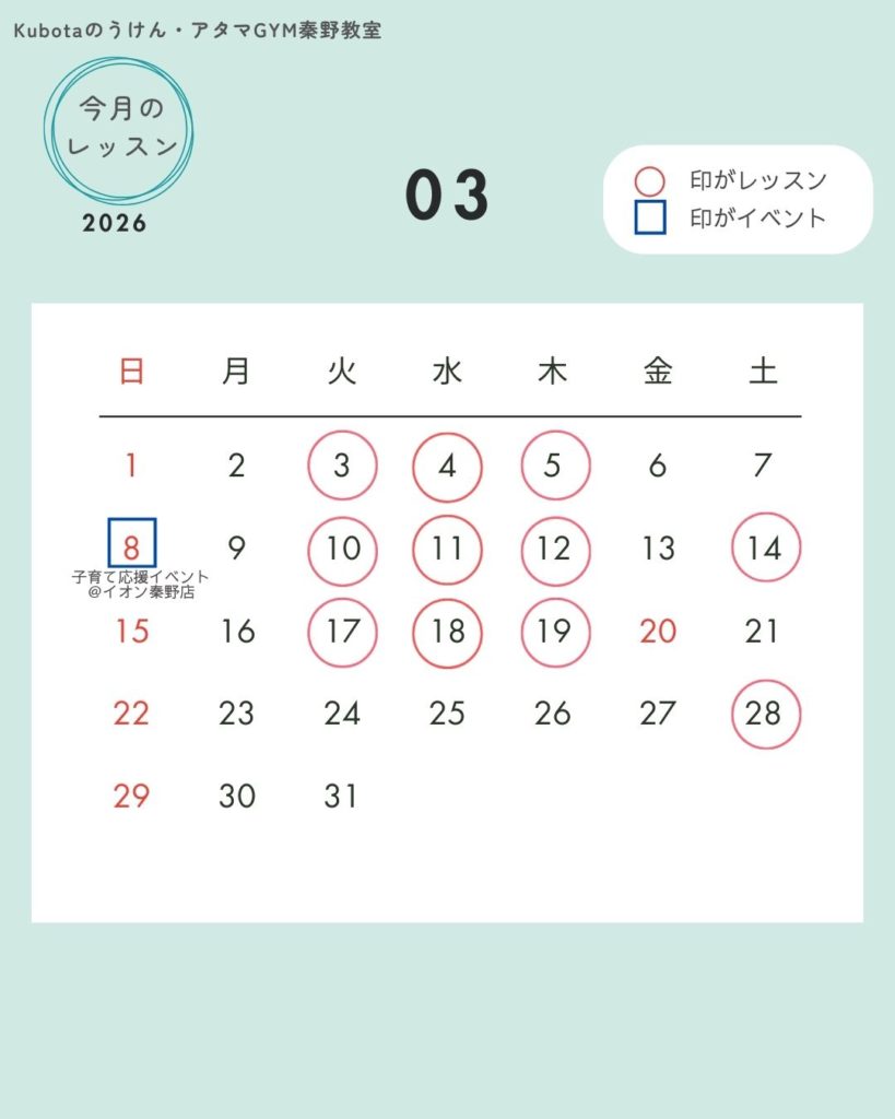 3月のレッスン日程もアップしました。カレンダーをご確認ください。