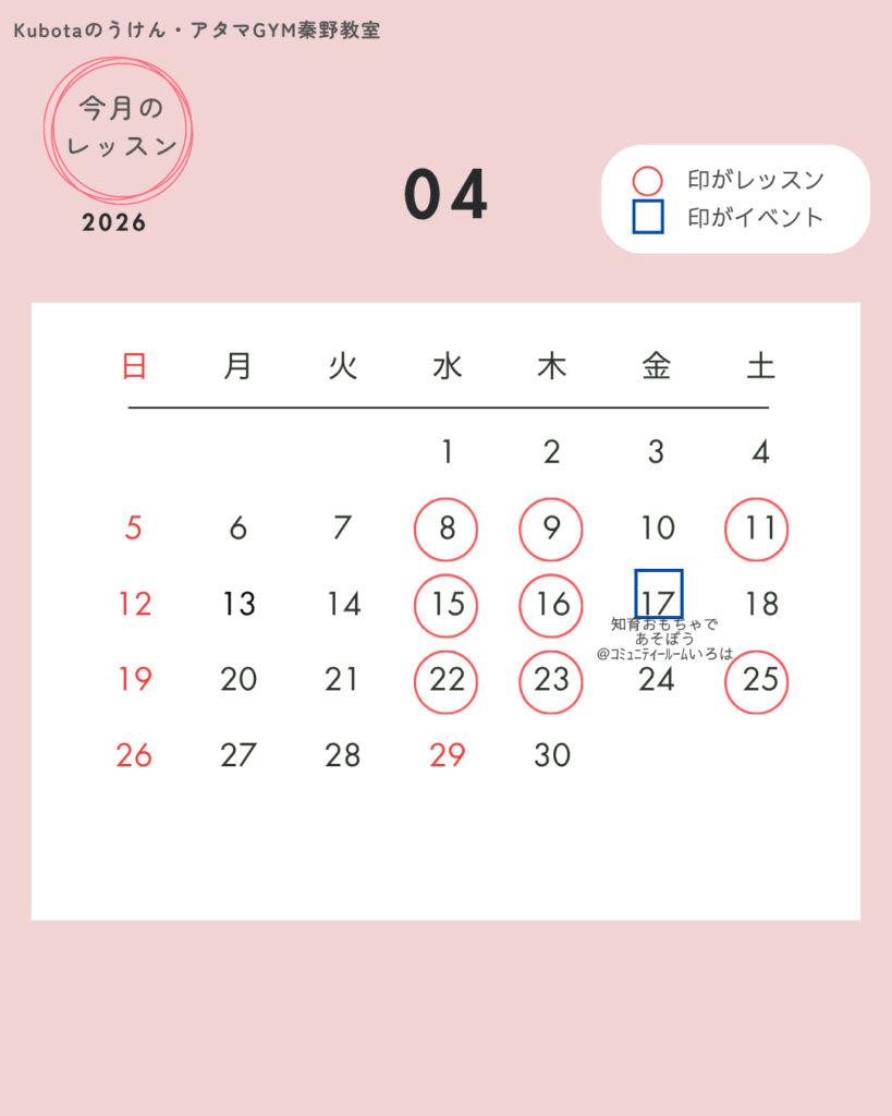 今日は、4月のレッスン予定と来月のイベントのお知らせです。