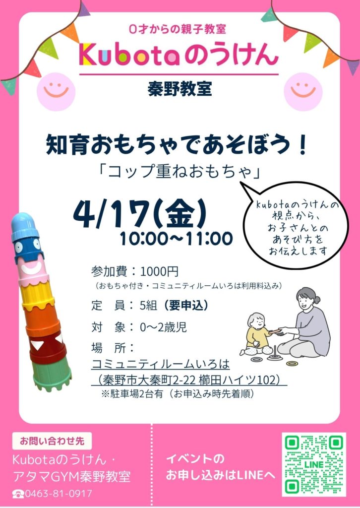 コップ重ねのおもちゃを使ってKubotaのうけんの視点から、お子さんとの関わり方や遊び方もお伝えします(*^_^*)