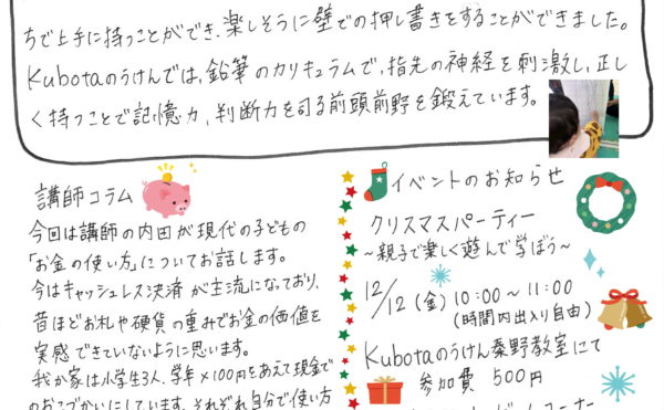 こんにちは、Kubotaのうけん・アタマGYM秦野教室です!本日は、秦野教室通信Vol.57です。 教室の様子やお知らせに加え、講師たちのコラムをお届けしています(*^▽^*)今月は内田先生。お子さんのお小遣いについて書 […]